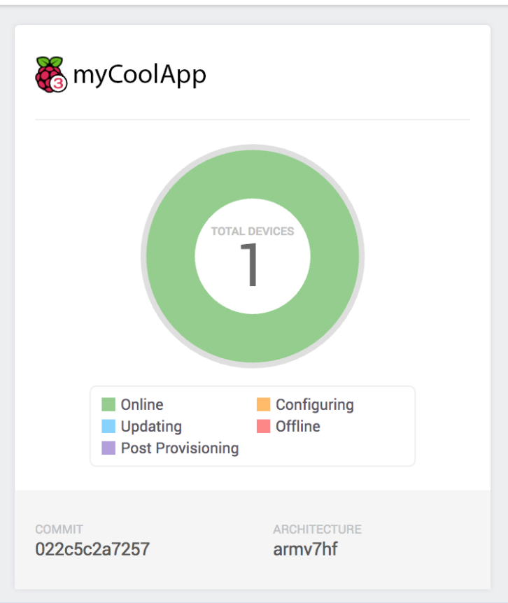 Remember, if you burn this resinOS image associated with the application that you created onto multiple SD cards and place each one into a device then all of those devices will show up under that application in the Resin.io dashboard.